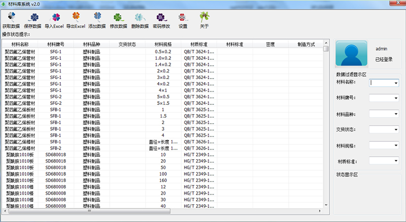 √ 在服务器端,提供数据的增加、修改、导入、导出、查询、删除功能,方便材料库的维护