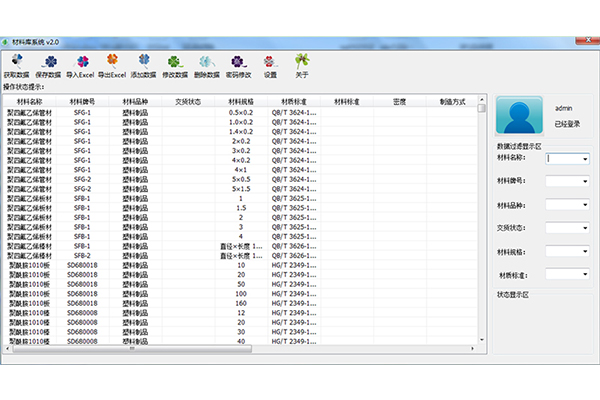 材料库包含了2000多种常用黑色金属、有色金属、非金属等材料,每种材料包含其化学性能、物理性能和力学性能等信息,如材料名称、材料牌号、材料品种、制造方式、交货状态、精度等级、组别、规格、材料标准、品种标准、标注方式、热处理状态、铸件类别、比重...